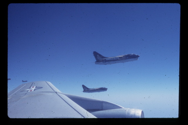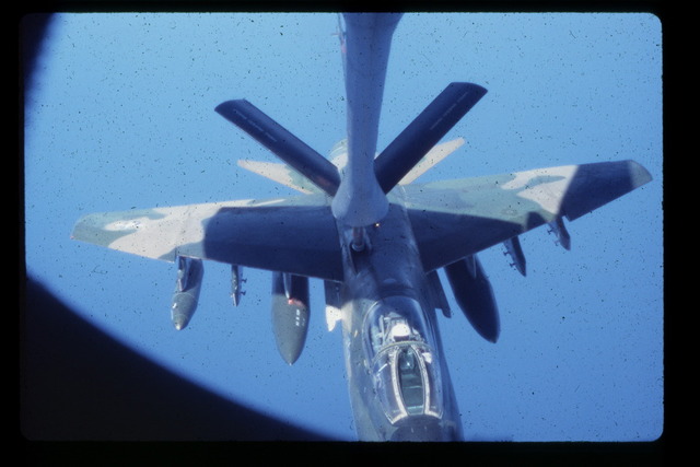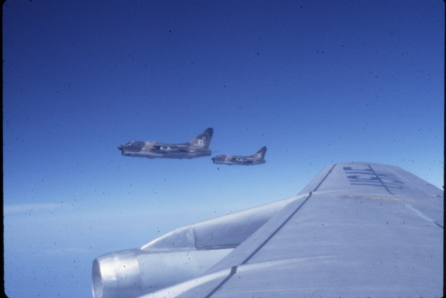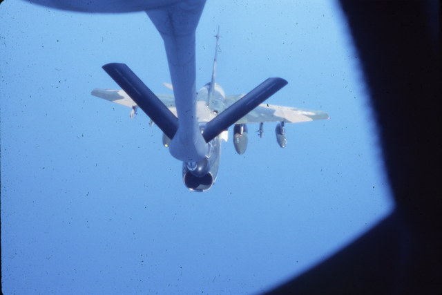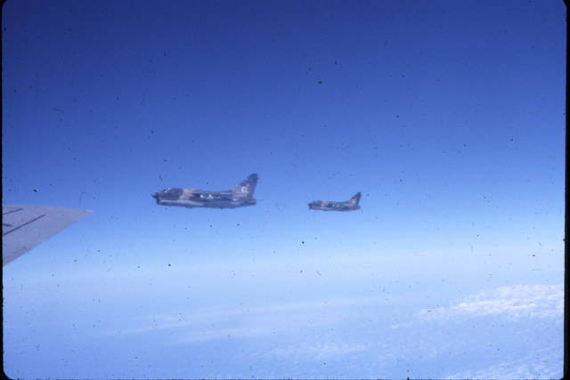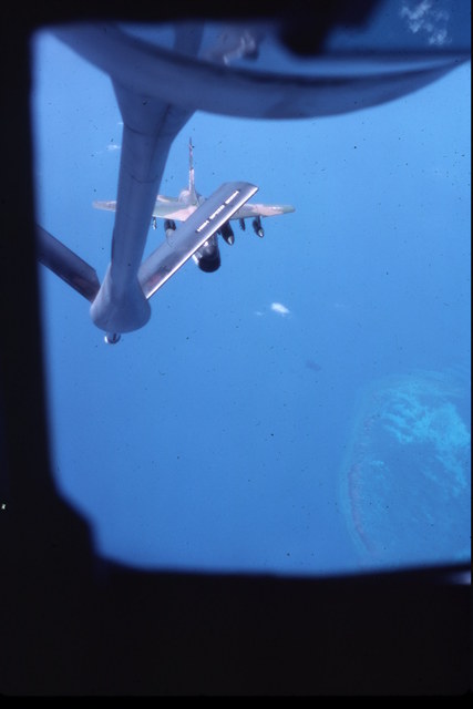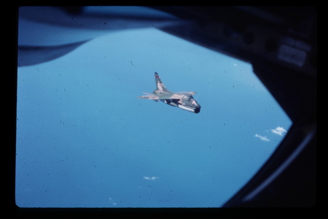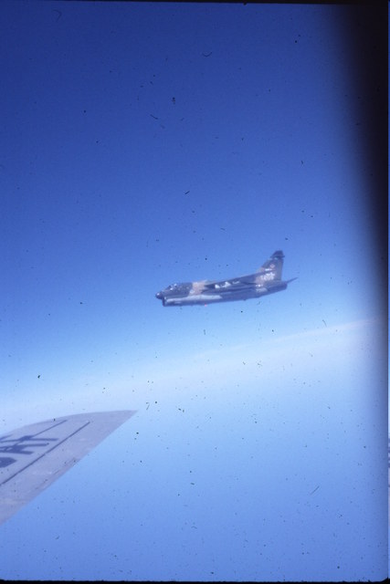 These pictures were taken by Roger Morris. Roger was stationed at Barksdale AFB and was invitied to go on an inflight refueling mission. It just so happened the aircraft being refueled were A-7's from England AFB in route to Howard AFB in Panama.