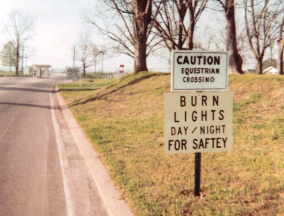 Sign at the exit of the back gate. Equestrian is a horseback rider.